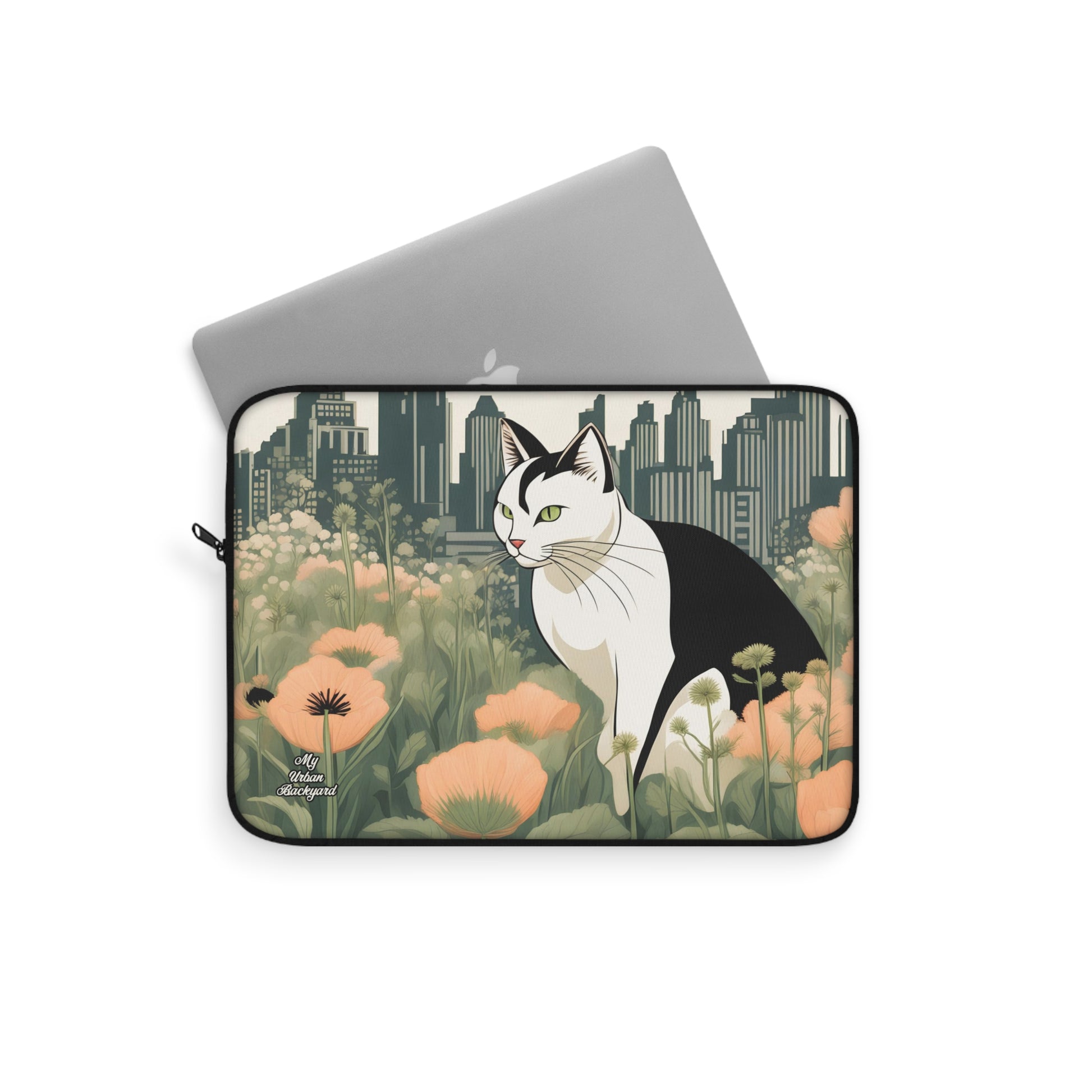 City Cat with Flowers, Laptop Carrying Case, Top Loading Sleeve for School or Work