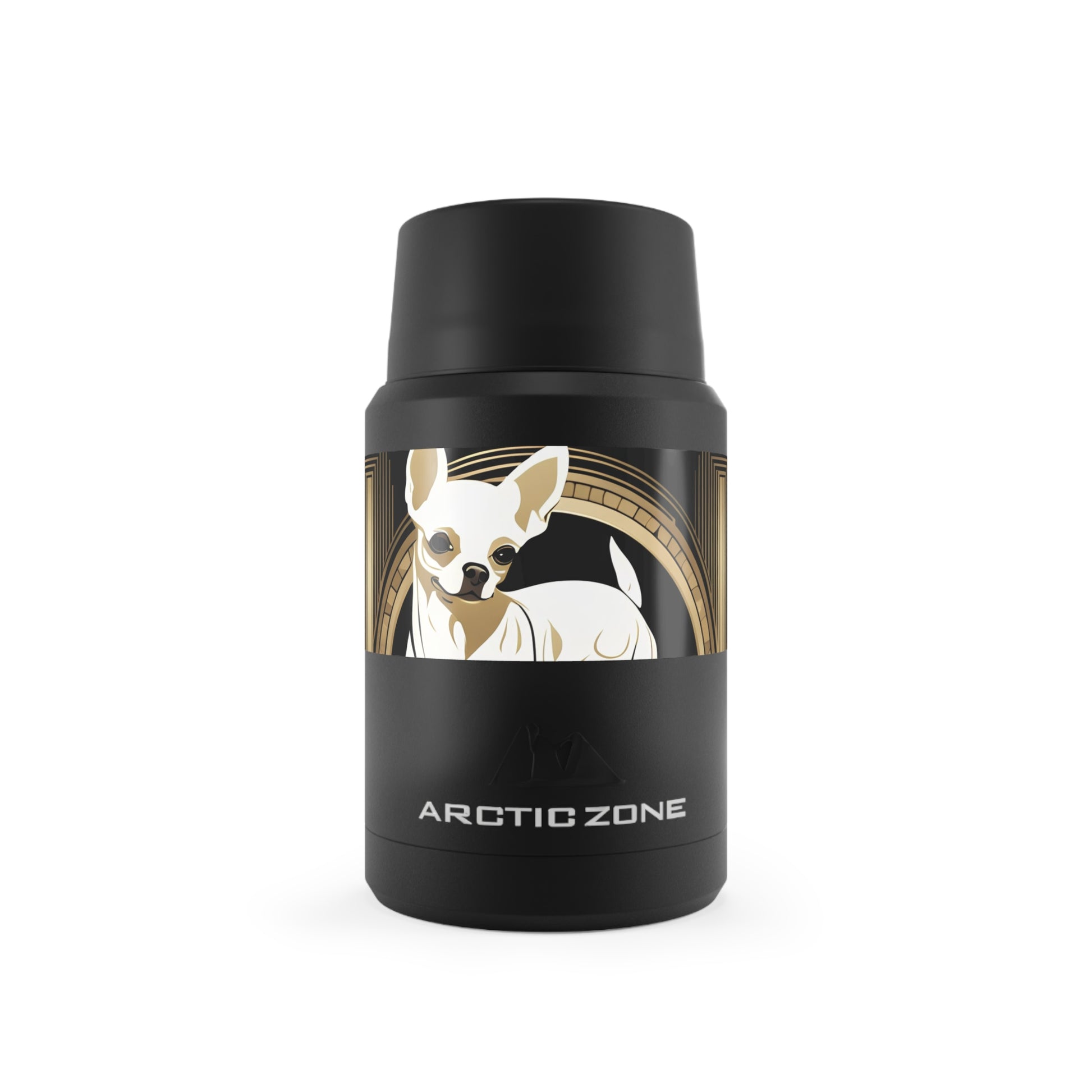 White Chihuahua, Reusable Insulated Food Storage Container with Spoon – 16.9oz